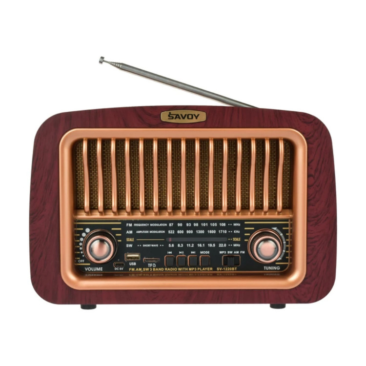 با رادیو کلاسیک SAVOY ساووی مدل SV-1220BT، سفری به دنیای خاطرهانگیز موسیقی را تجربه کنید. این رادیو طرح قدیم، با ظاهری شیک و کلاسیک، نه تنها یک وسیله پخش موسیقی است بلکه یک اثر هنری در دکوراسیون منزل یا محل کار شما به شمار میرود. مدل SV-1220BT با امکان پشتیبانی از سه موج رادیویی AM, FM, SW به شما این امکان را میدهد تا از گوش دادن به ایستگاههای رادیویی مورد علاقه خود در هر جای جهان لذت ببرید.رادیو کلاسیکاین رادیو کلاسیک با داشتن درگاه USB و TF، امکان پخش MP3 از طریق فلش و مموری کارت را فراهم میآورد و با بلوتوث داخلی، امکان پخش موسیقی از گوشی هوشمند، تبلت یا هر دستگاه دیگری که با بلوتوث سازگار است را به سادگی میسر میسازد. دیگر نیازی به حمل کابلهای اضافی نیست، فقط دستگاه خود را به رادیو متصل کنید و از موسیقی بهرهمند شوید.باتری شارژی 1200 میلی آمپری به شما این امکان را میدهد تا برای مدت زمان طولانی از موسیقی بدون نیاز به شارژ مجدد لذت ببرید. این ویژگی رادیو طرح قدیم SAVOY ساووی مدل SV-1220BT را به یک همراه ایدهآل برای پیکنیکها، مسافرتها و هر فعالیت فضای باز دیگری تبدیل میکند.رادیو ساووی مدل SV-1220BT، با توجه به ویژگیهای پیشرفته و طراحی کلاسیک و زیبایش، گزینهای عالی برای کسانی است که به دنبال ترکیبی از سنت و مدرنیته در وسایل خود هستند. این رادیو نه تنها به شما امکان میدهد از موسیقی مورد علاقه خود لذت ببرید، بلکه با طراحی بینظیرش، جلوهای خاص به فضای اطراف میبخشد.همین حالا رادیو ساووی مدل SV-1220BT را به مجموعه دستگاههای خود اضافه کنید و از تجربهای بینظیر در گوش دادن به موسیقی، با کیفیت صدای عالی و امکانات فراوان، لذت ببرید.